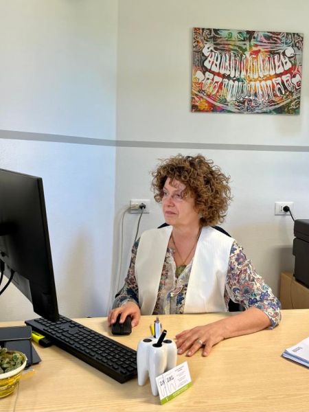 Sig.ra Mariangela Piccini (assistente studio odontoiatrico) aiuta i dottori a lavorare al meglio con i pazienti assistendo alle terapie mediche.